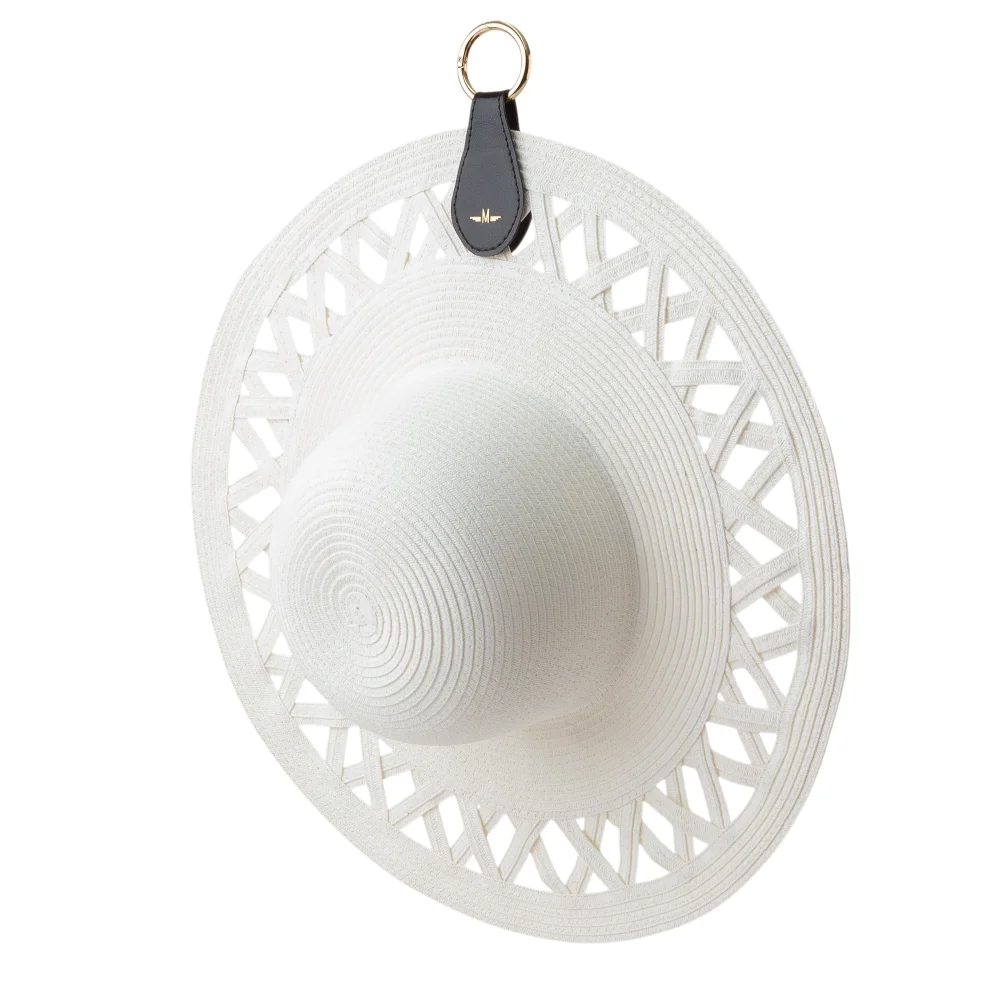 Kožený klip MARIMA – na uchytenie šatky alebo klobúka na pláži priamo o kabelku, opasok či tašku.